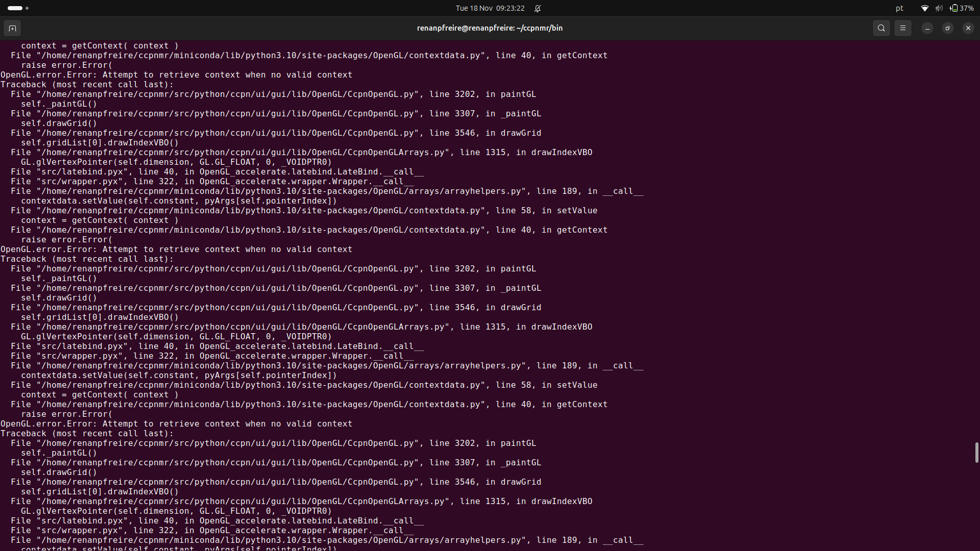 File “/home/renanpfreire/ccpnmr/miniconda/lib/python3.10/site-packages/OpenGL/contextdata.py”, line 40, in getContext