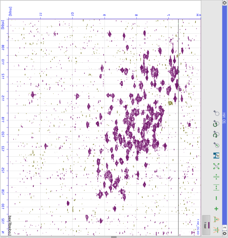 As I say, I thought HN was the default - so either something is overriding that for some reason, or the dimensions have been linked incorrectly. But the latter strikes me as unlikely, since simply swapping the axes gives something that looks like a normal HSQC with sensible chemical shift ranges and the Asn/Gln NH2 groups in the right place: